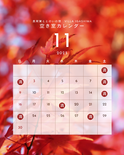 奥阿賀ととのいの宿VILLA IGASHIMA11月の空き室はコチラ↓↓