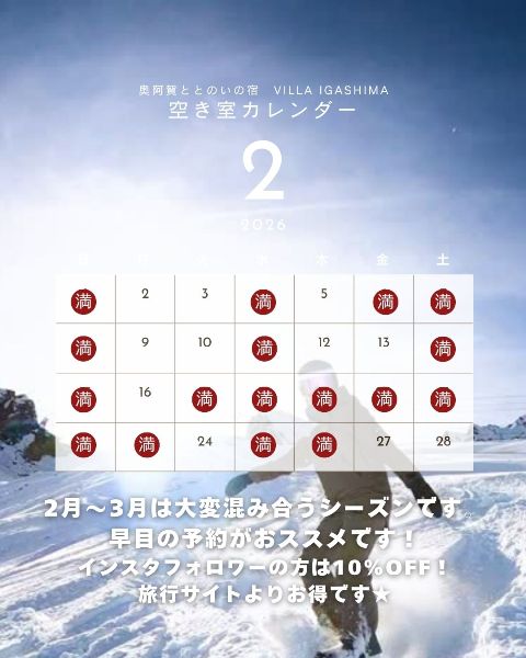 フォローはこちらからどうぞ➡奥阿賀ととのいの宿 ヴィラ五十島(@villa_igashima)