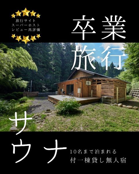 10人まで泊まれるサウナ付1棟貸し無人宿で卒業旅行の思い出づくりに人気です。